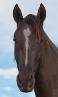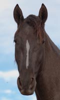 Body color, including at the muzzle, eyes, flanks, inside upper legs, mane and tail are black.